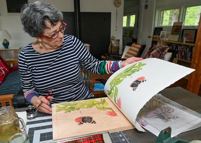 I have been creating white line woodcuts, also known as Provincetown prints, since 2002 after being inspired to learn the technique by an exhibit at The Museum of Fine Arts in Boston. I enjoy experimenting with this hand-printing technique and relish the freedom to play with wood, color and shapes this method allows.